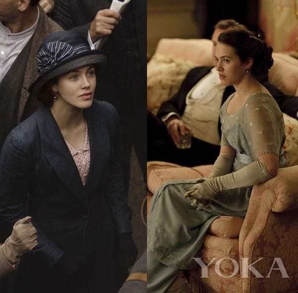 很多人一开始会忽略剧中的二小姐Lady Edith,觉得她多是作为女一的陪衬。但其实服装师在她的着装上下了很多功夫,因为不同于大小姐简单大方的个性,早期的Lady Edith的确很传统,但是后来一直追求自我,是不服从于那个时代的个性女孩,经历过很多感情起伏,并勇于追求自己的事业,所以她的服装不能只强调美感。