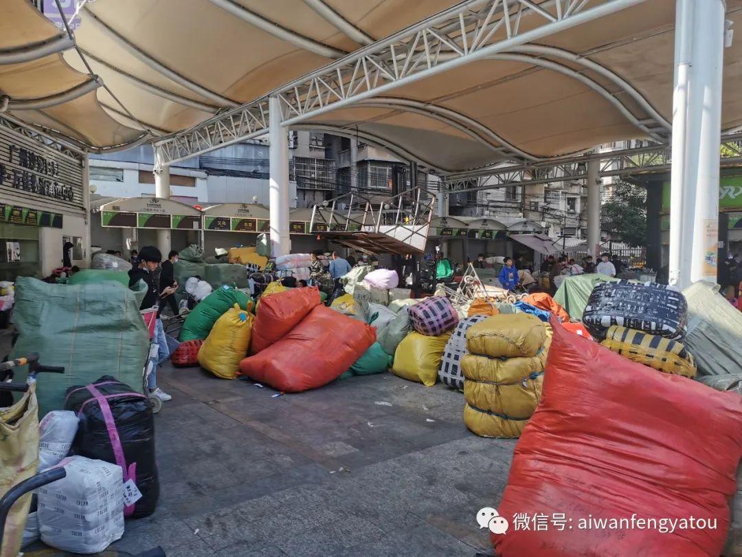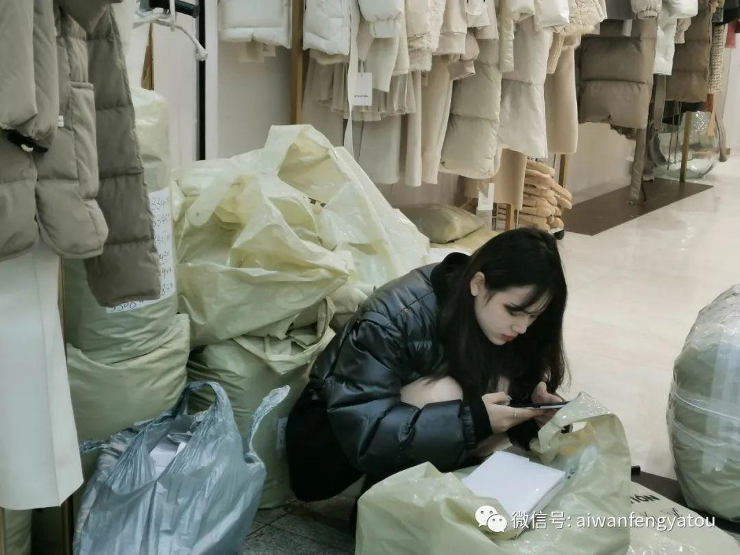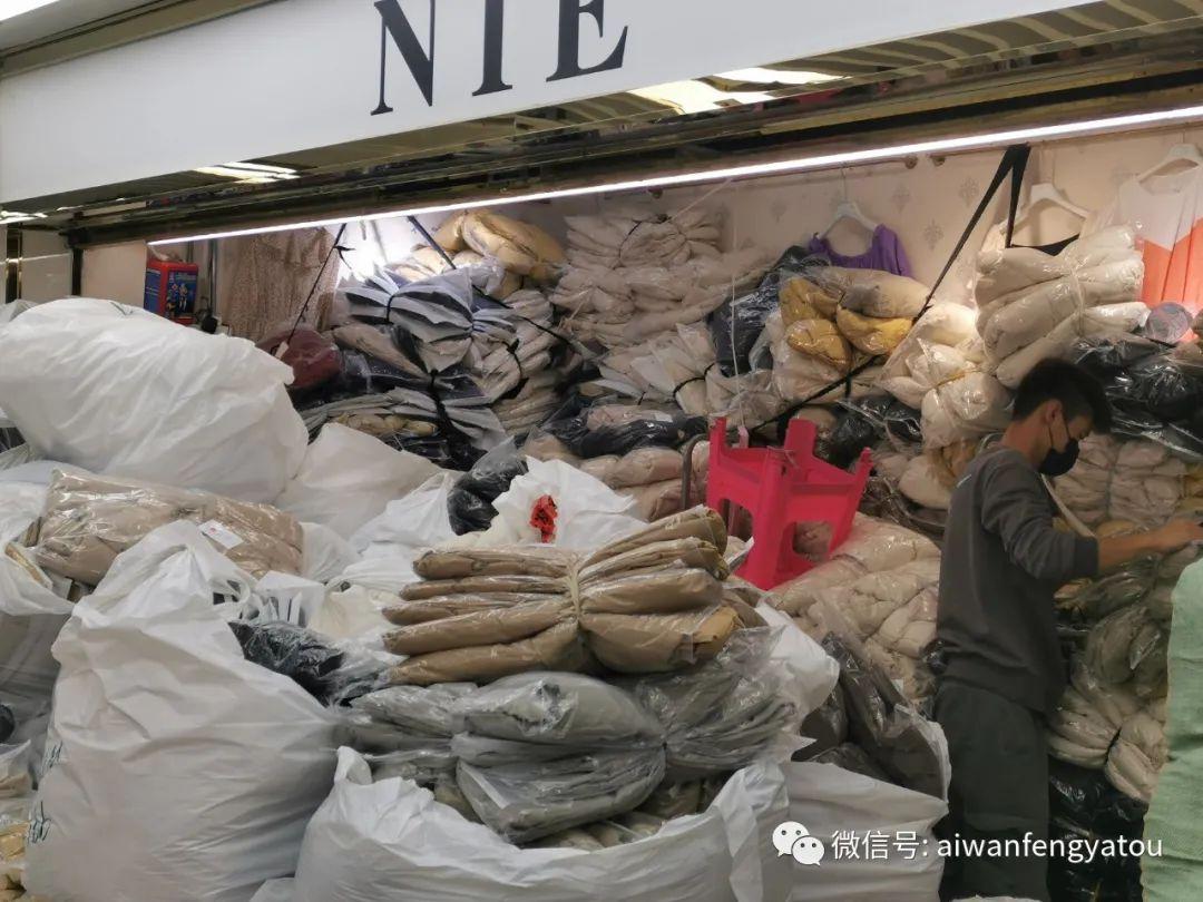 作为服装批发商场,一大特色就是数不尽的打包袋,无论是从别处运来,还是打算运走的衣服,又或者是店内储存的货物,一大袋一大袋分装好,再严严实实的缠上几圈胶带,的确是方便节省空间的做法了。