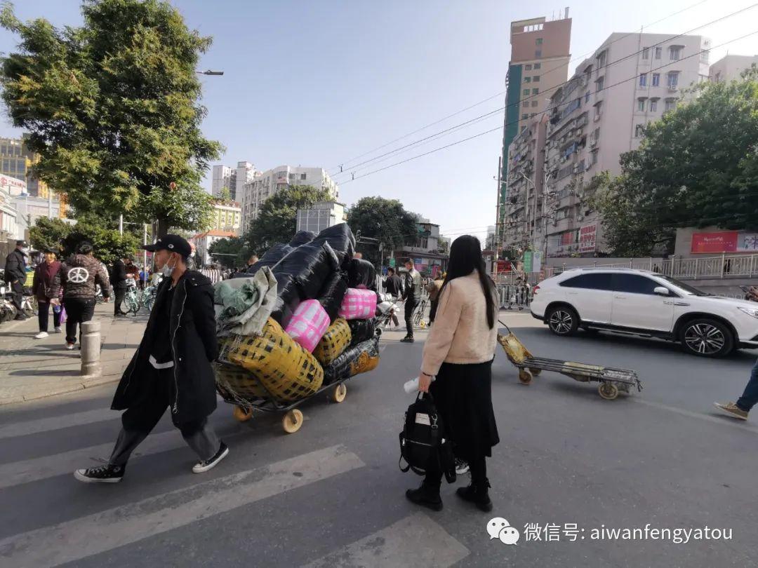 还不到中午,街道上已经有堵车的态势,行人、拖车人、私家车、物流车交织,慢慢的往前挪。