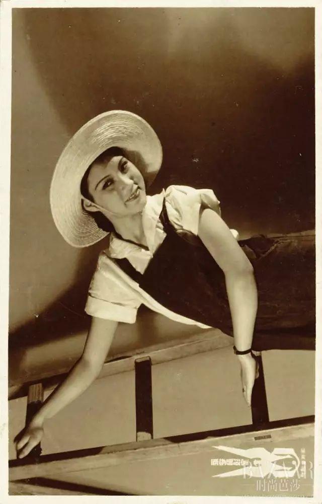 1935年 女明星胡萍身穿工装裤 永安摄