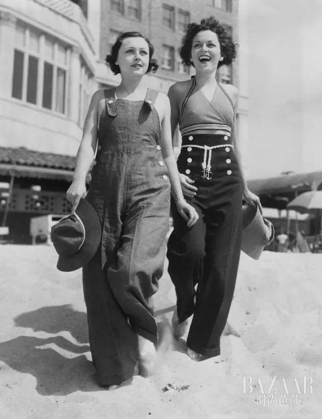 30年代的工装裤作为沙滩裤的形式存在