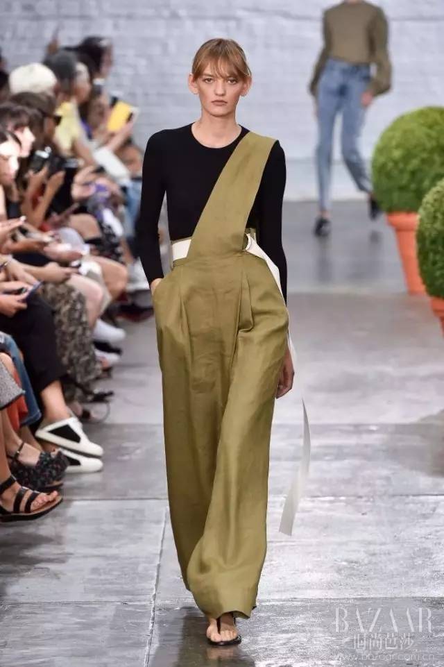 时光走了一圈回来。现在的工装裤和背带裙款式多不胜数,早已不是当年的朴素模样。相比于同样出身于工人阶级的T恤、牛仔,背带裤和背带裙虽并没有成为经典,却成了一种复古又时髦的选择,时不时就回潮一次。