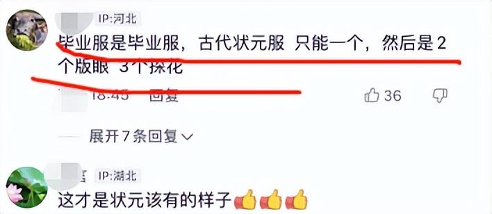 也有网友表示毕业的时候就应该穿学士服,毕竟古代的状元服只有一套,然后是榜眼、探花,不适合学生们毕业期间集体穿着。