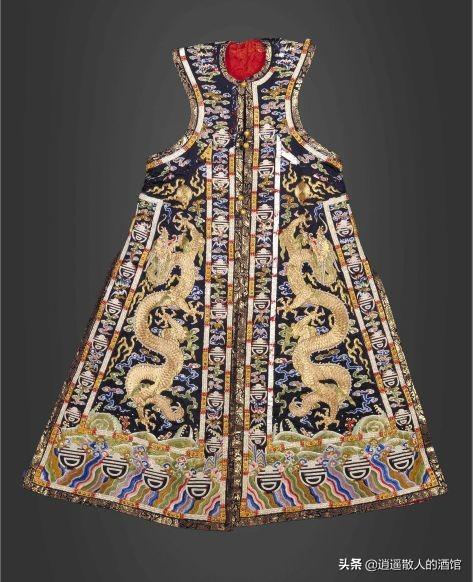 此袍将清代皇后朝袍的特色及其工艺制作水平表现的淋漓尽致,距今250多年历史,是故宫博物院目前仅存的一件缀金板嵌珠石皇后朝袍