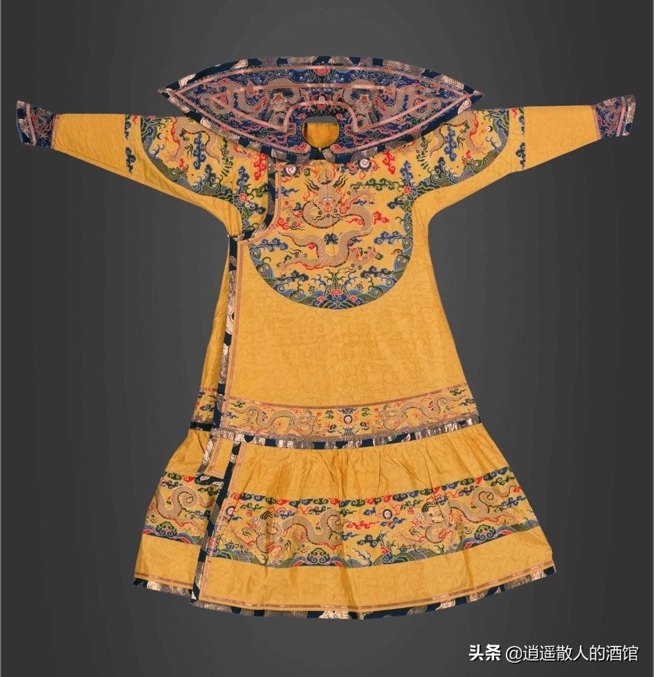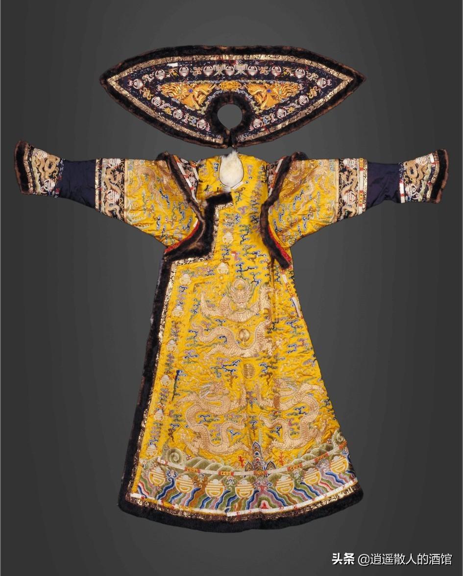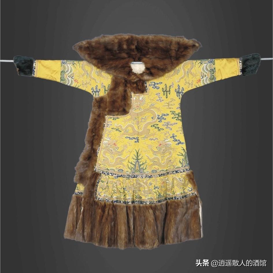 明黄缎绣金龙皮朝袍此朝袍是乾隆皇帝孝贤纯皇后的礼服,为皇后在重大典礼时穿的