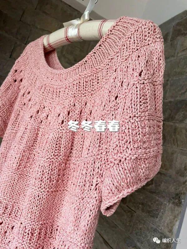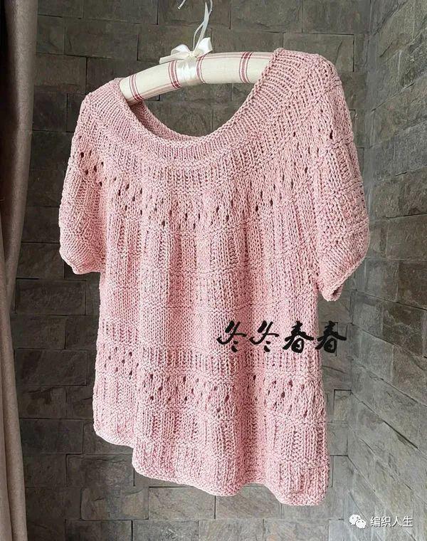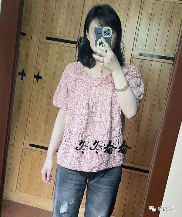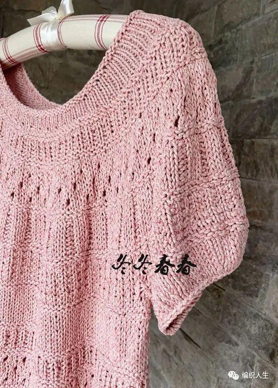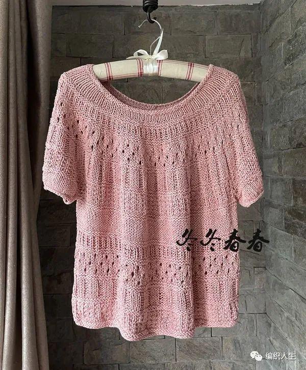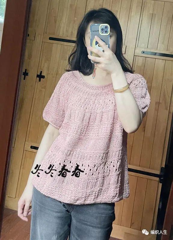 很少织夏季的衣服,因为穿不到,我这人吧比较怕热,天冷了露两胳膊又觉得凉,这次参加了亮群的群织,便来了件短袖吧。