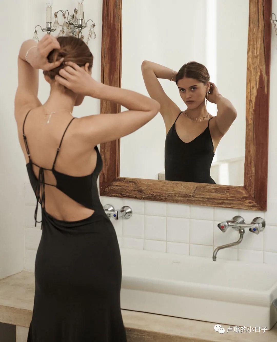 譬如这件黑色的连衣裙,胸口是透视的小蕾丝,背后也有,但面积不大。我曾说过,蕾丝一定是小面积看起来才更有味道,不会过于甜美。