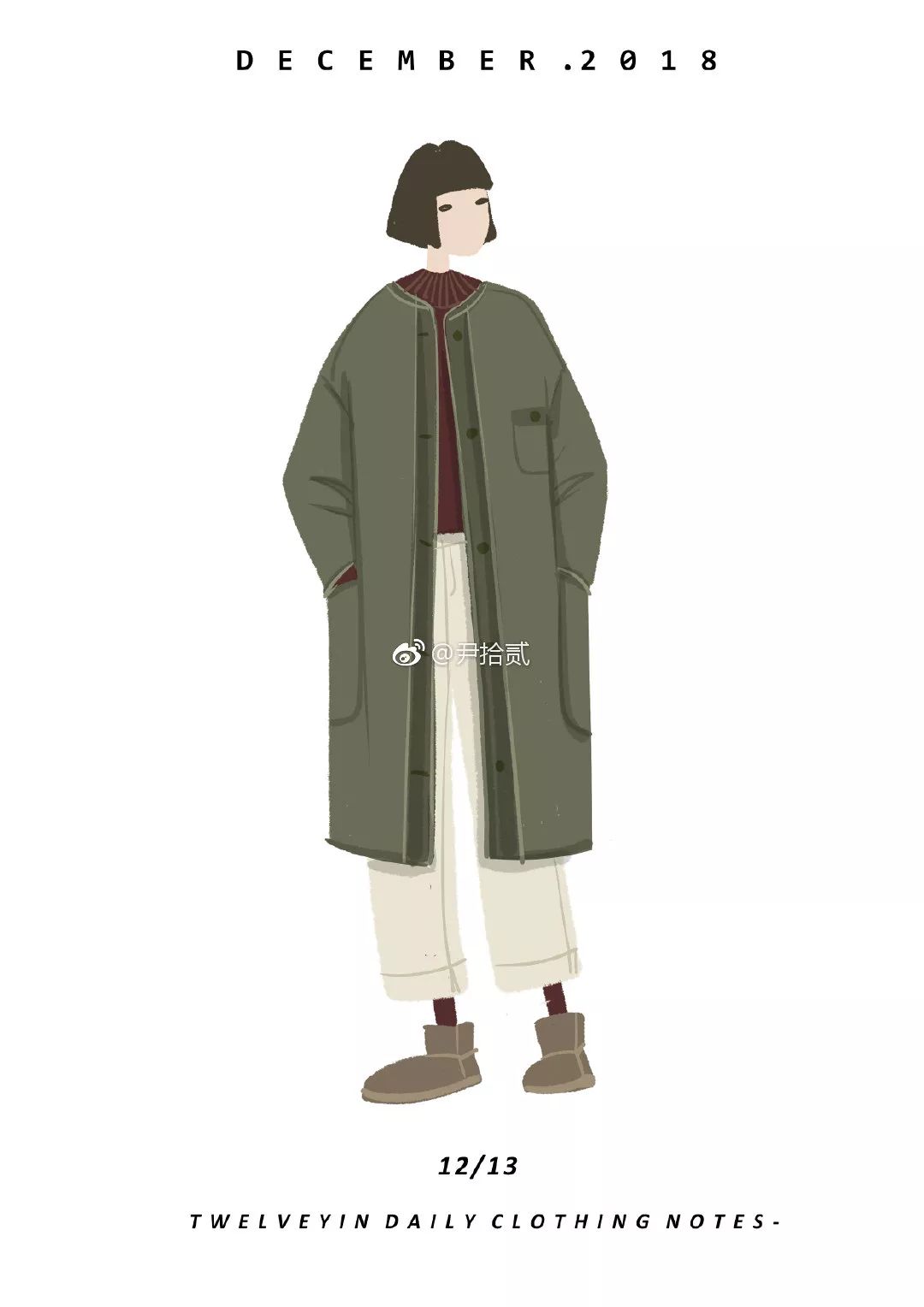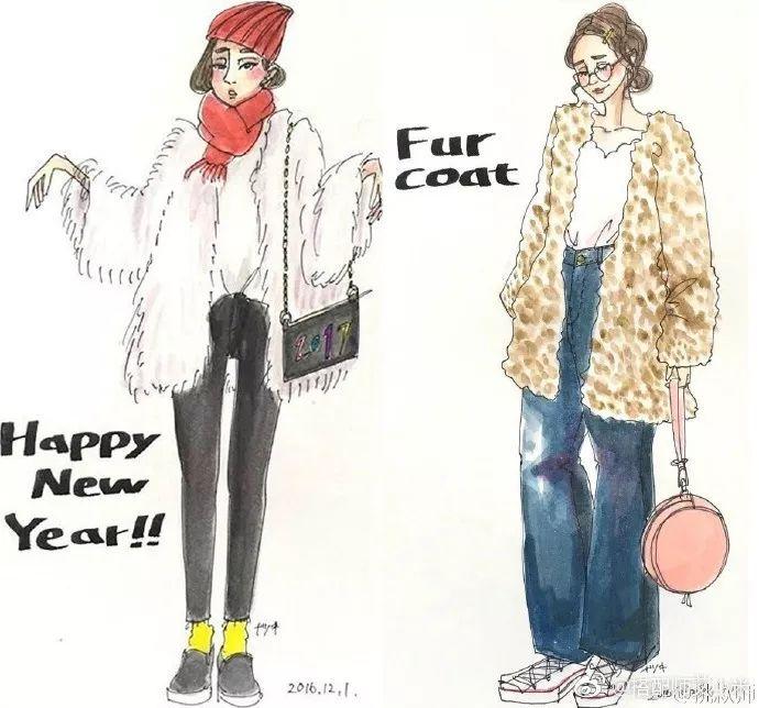 她坚持一年用手绘的方式记录每日的穿搭