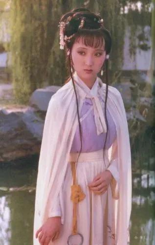 黛玉丧母之后满腹忧愁前往外祖母家的船上,双眼含泪的黛玉穿的是浅紫鸡心领绣梅花褙子、白绸竹叶立领中衣。