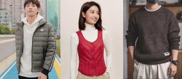 海澜之家立领舒适羽绒服、高梵轻薄羽绒马甲、马登工装圆领粗线毛衣