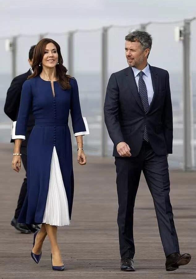 和王储现身巴黎街头,玛丽王妃选择了一款深蓝色的中式连衣裙,在这样的正式场合选择的这款长裙,女人味十足,裙子中间采用开叉设计,与上部的设计相呼应。这样不仅格外时尚,而且还带有一些性感,美出国际范。