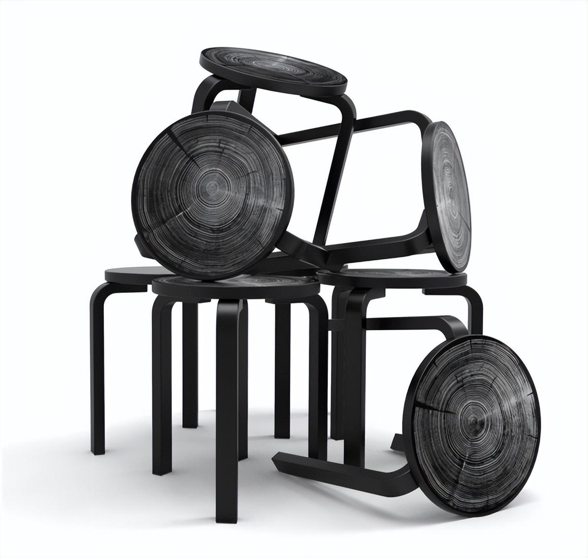 RINGS 2012即使是一棵树也有逐年缓慢生长的历史,留下一层层厚薄不一的年轮。RINGS椅子通过在椅面叠加复杂而有机的年轮图形,与大自然一起感受时间的沉重。