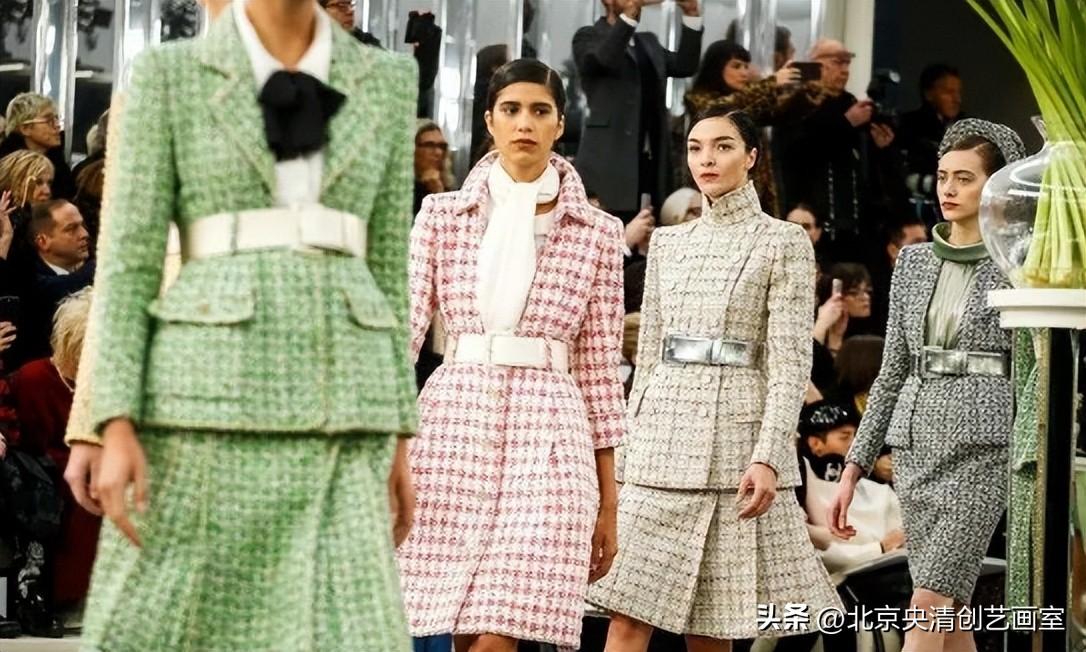 斜纹软呢原产于苏格兰,Coco女士从西敏公爵的斜纹软呢猎装中汲取灵感,对面料进行柔化加工,首开先河地将斜纹软呢运用于女性服装。
