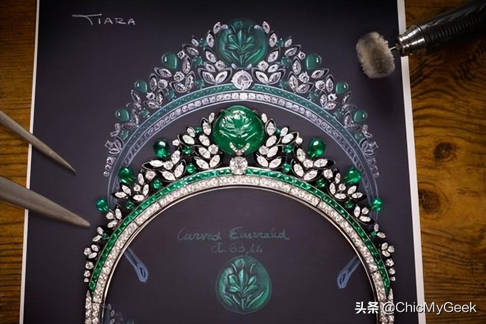 这顶Jubilee Emerald Garden珠宝皇冠由大师级工匠耗费超1500个小时打造。皇冠以铂金为底,并镶嵌祖母绿与钻石,代表着女王的白金禧周年盛事,奢华又尽显高贵!