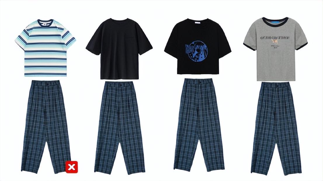 图案的变化很多在穿搭上让人觉得乱,除了颜色还有图案。