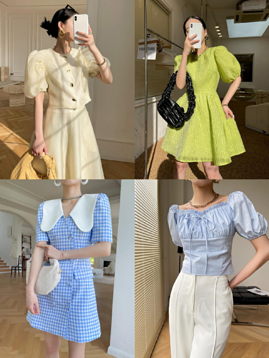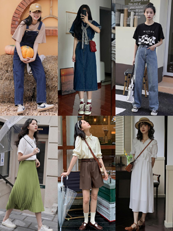 整体的搭配包括配饰、色彩呼应、穿搭风格、穿衣场景都很完整,像上面这家店铺就很适合学生党和适合温柔活泼路线的风格的集美参考。