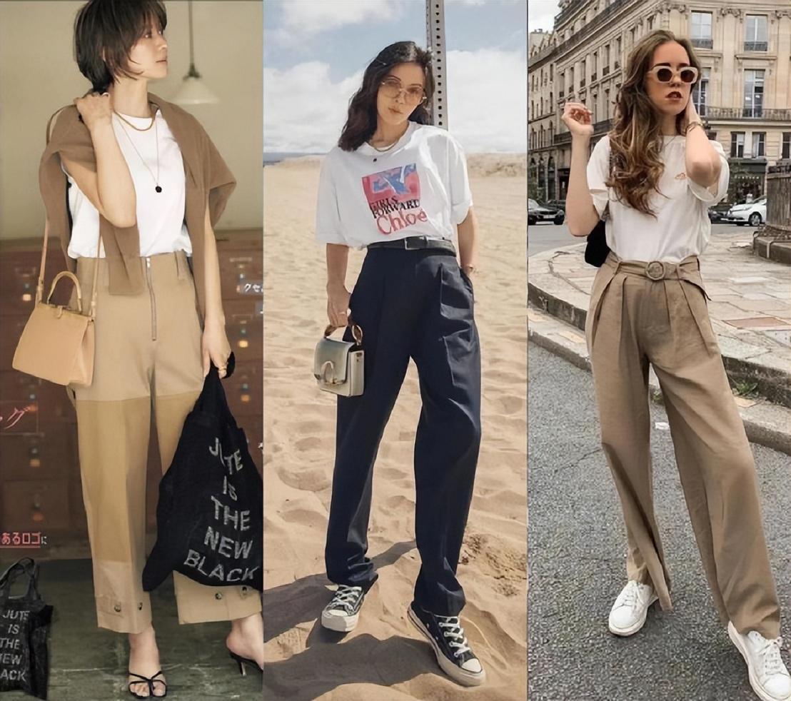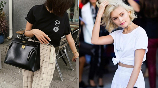 而通常穿搭博主在穿T恤的时候,会挽起袖口,把下摆扎进裤子里或打个结。
