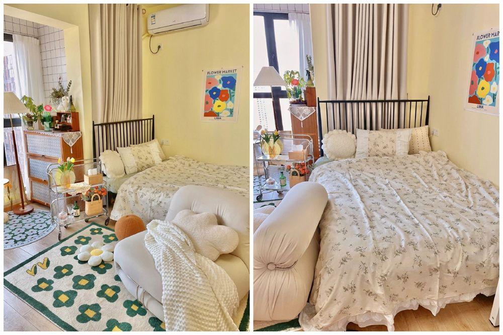 床品采用了少女风满满的碎花图案,进一步提升了家里的温馨氛围。