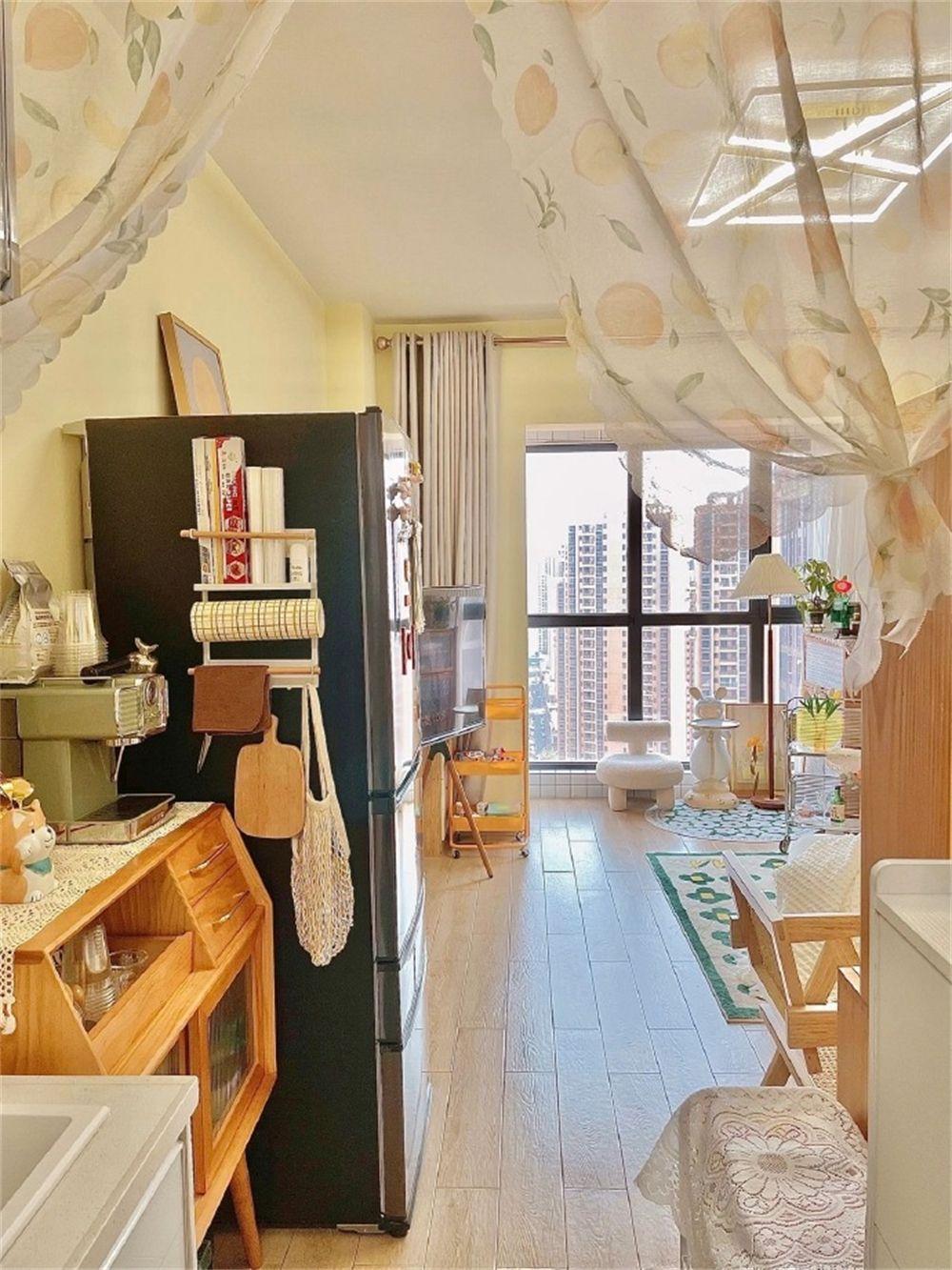 一转头就能看到进门处狭窄的厨房,可想而知这个家有多么小,不过姑娘说,小也有小的好处,起码卫生容易清理,对于独居的她来说负担小了很多。