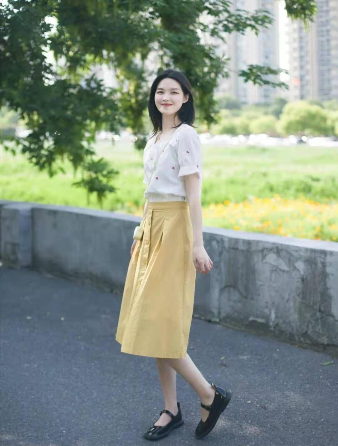 3.如果你苦于不知道用啥来搭配日常的话,一定要尝试一下半身裙,容易搭配又很修饰身材。