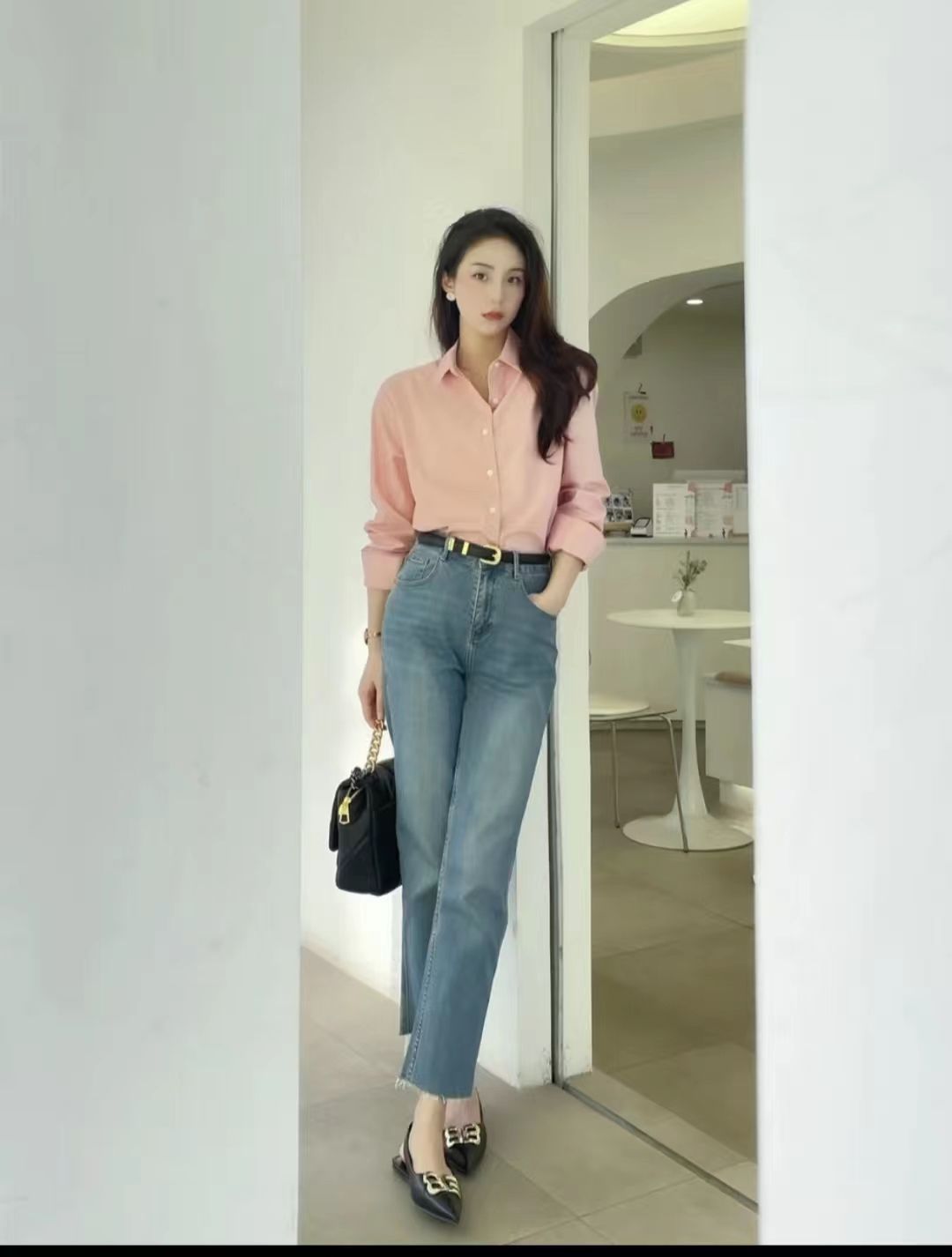 1.选择饱和度比较低的浅色系衣服来穿不仅不容易显膨胀,而且也更能凸显出温柔气质。