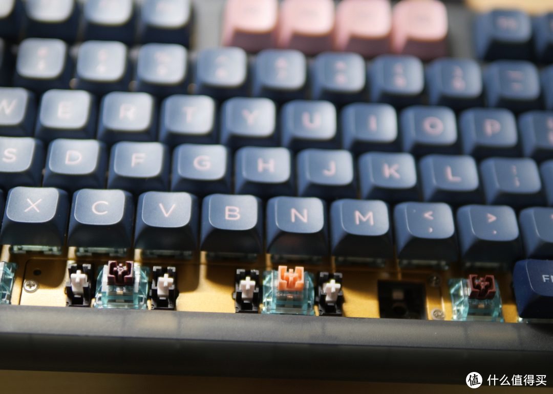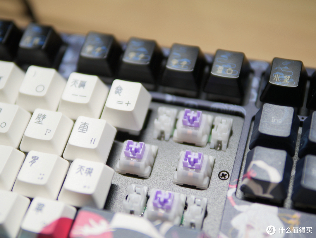 我搭配的是小黄鱼收来的紫金轴和一套雪山键帽,整个安装过程还是轻松愉快的,紫金配色的轴体不多见,这是一款段落加大的类茶轴,略接近提前大段落。