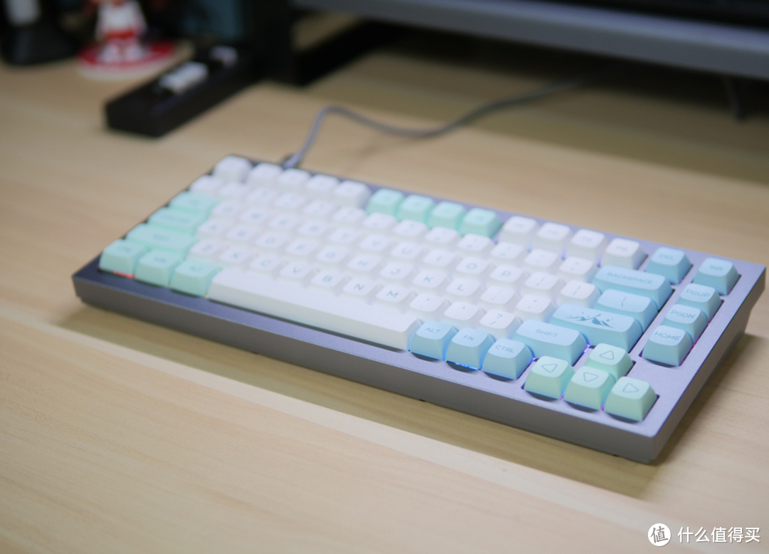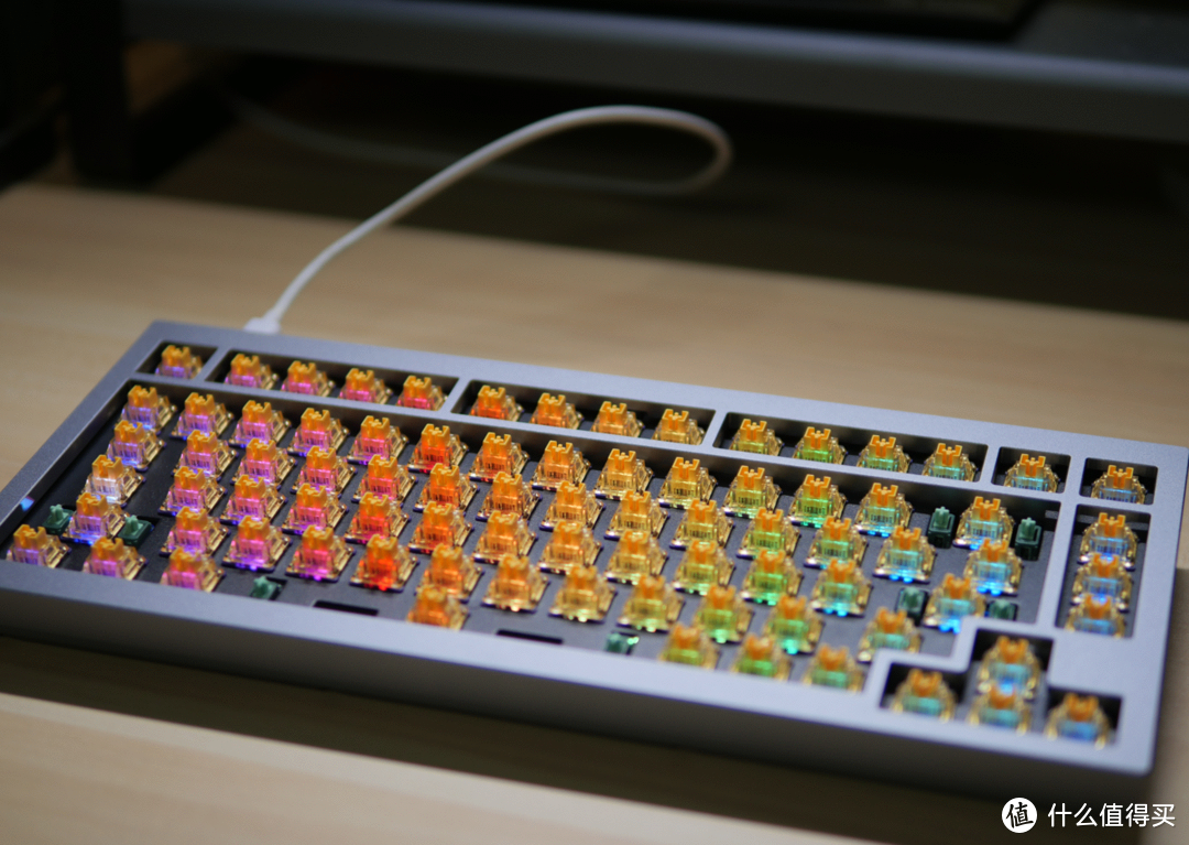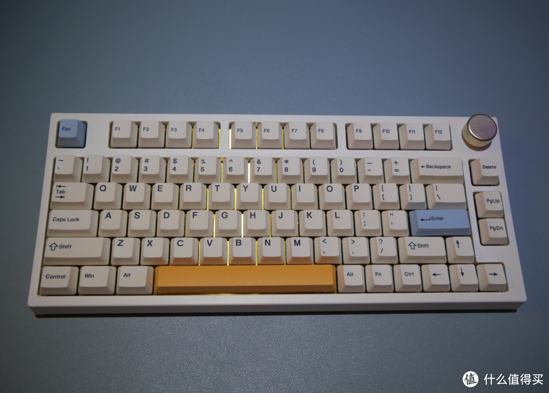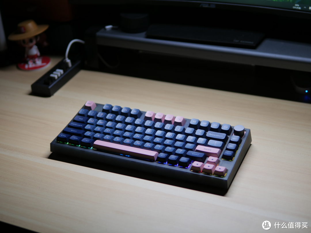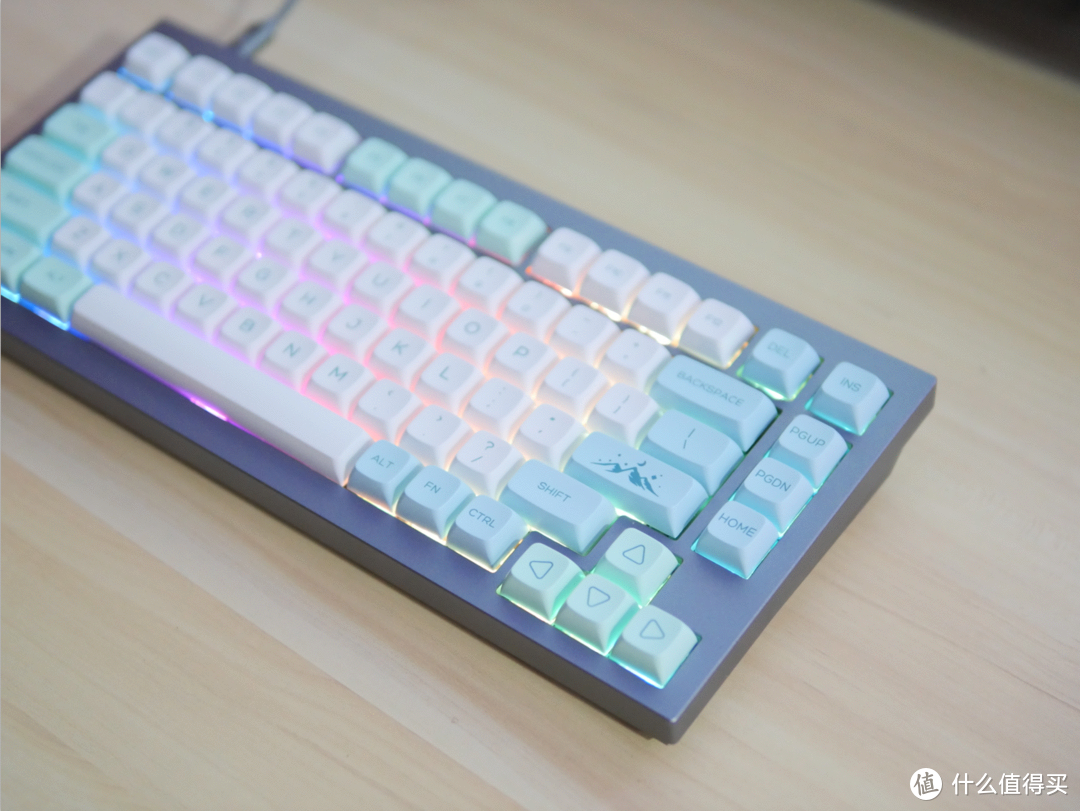 相对比较早出的75%产品,也就是因为早,所以还是不是Gasket结构。之前对标的时NJ80,同样有黄铜定位板的版本,价格便宜不少,而且方向键还分离的。MDA高度的热升华PBT键帽也算是个亮点。有佳达隆的POM轴心系列轴体可以选,本身产品还可以,喜欢外观的和可以考虑,不是特有眼缘的话,就算了。