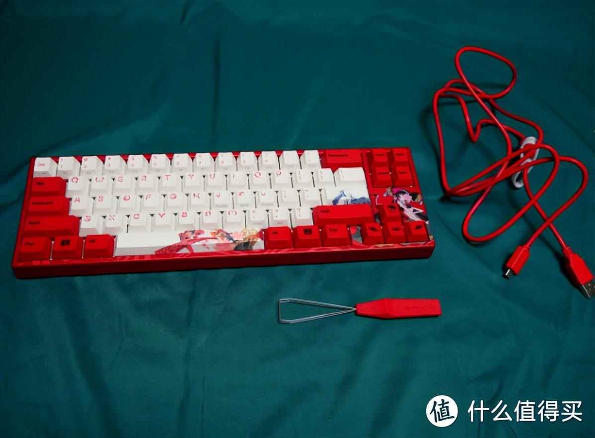 一把是在售的Z830,少见的红色外观,很有圣诞老人的感觉,Gasket结构,G黄pro轴(好像是),整体做工和大键调校都还不错。也是米物旗下目前推荐的键盘。当你吃它的颜的时候,它的使用体验也会让你满意。