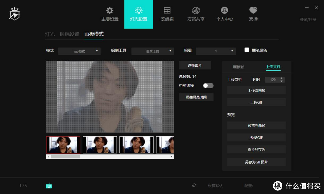 看到L75首先映入眼帘的就是右上角的小窗,这个小窗是彩色的,Morten显示时间电量连接模式等信息,同时还可以通过驱动生产照片或者手绘,自定义上面的内容。