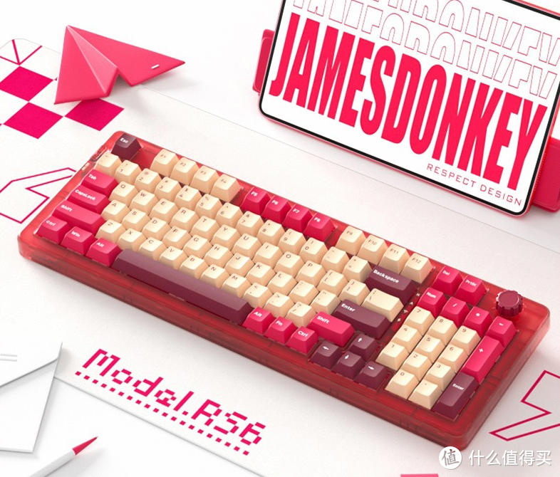 D84使用的是佳达隆的Gpro轴体,没什么好说的,支撑起599元价格的主要还是他的设计。多款配色都很有辨识度也很好看,两侧的弧形倒角卡扣让整个键盘的视觉上更加柔和,而且这个卡扣是可以更换的。键位的设计以及键帽本身也比较有特点,尤其是方向键并没有侵入右侧shift,总体来说还是一款以外观为主要卖点的键盘。