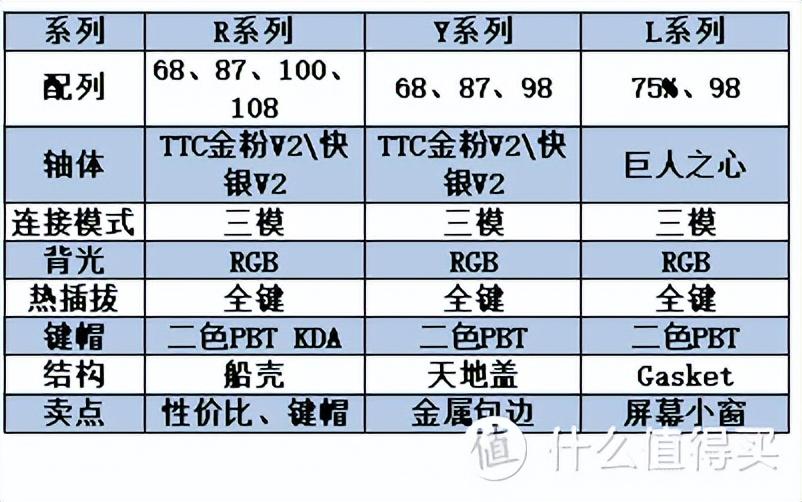 Y系列和R系列在同价位的键盘里都是具有竞争力的款式。