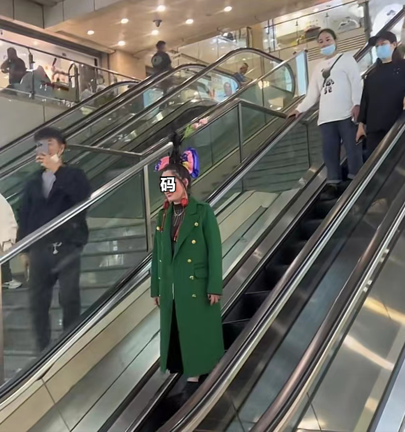 浙江女子身穿个性服装逛商场在浙江有一位自信的女子,通过衣着打扮成为了人群中的焦点。
