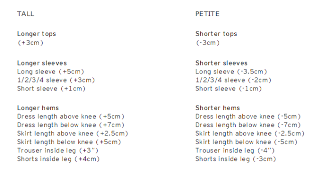 TOPSHOP也有出Petite系列,专门针对158以下的娇小姑娘~看一下TOPSHOP普通系列尺码和Petite系列系列的尺寸对比,每个尺码都缩减了1~5厘米不等~▼