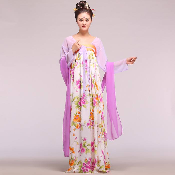 唐代女装的特点是裙,衫,帔的统一。在唐代妇女中,出现了很多半遮半露,袒胸露臂,甚至是袒胸露乳的形象,这在唐代的壁画中就可以略知一二,电视剧也有表现。那么,我们是否能就此推测唐代妇女的着装都是暴露的呢?其实不然,这也是有特定条件限制的。