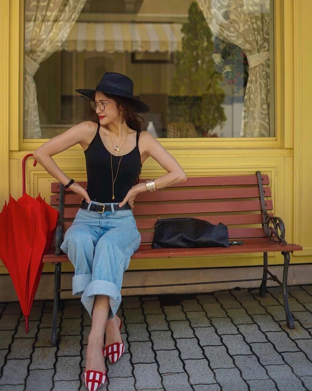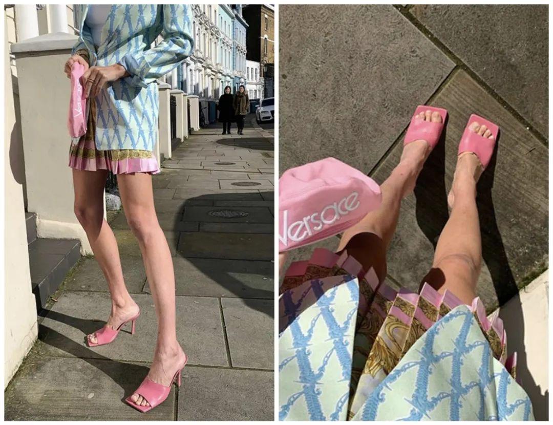 另一点是看款式,选露肤多的凉鞋,彩色面积小的。看下面对比图,右边更好驾驭些,喜欢高饱和度彩色鞋子的话,可试试这招。▼