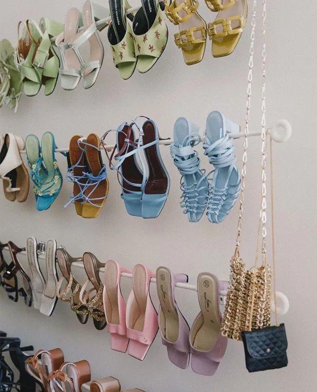 如果想选更活泼有趣的颜色,可以试试今年火的马卡龙色。LA博主Alyssa Coscarelli选鞋就是这个思路,看看她鞋柜~▼