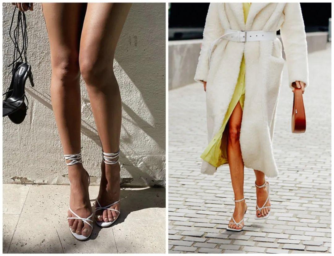对了,绑带款的凉鞋,不宜选设计太繁复的,会显得十分累赘笨重(左)。好选择规则的交叉款、斜带款,这样才能达到修饰果(右边)~▼
