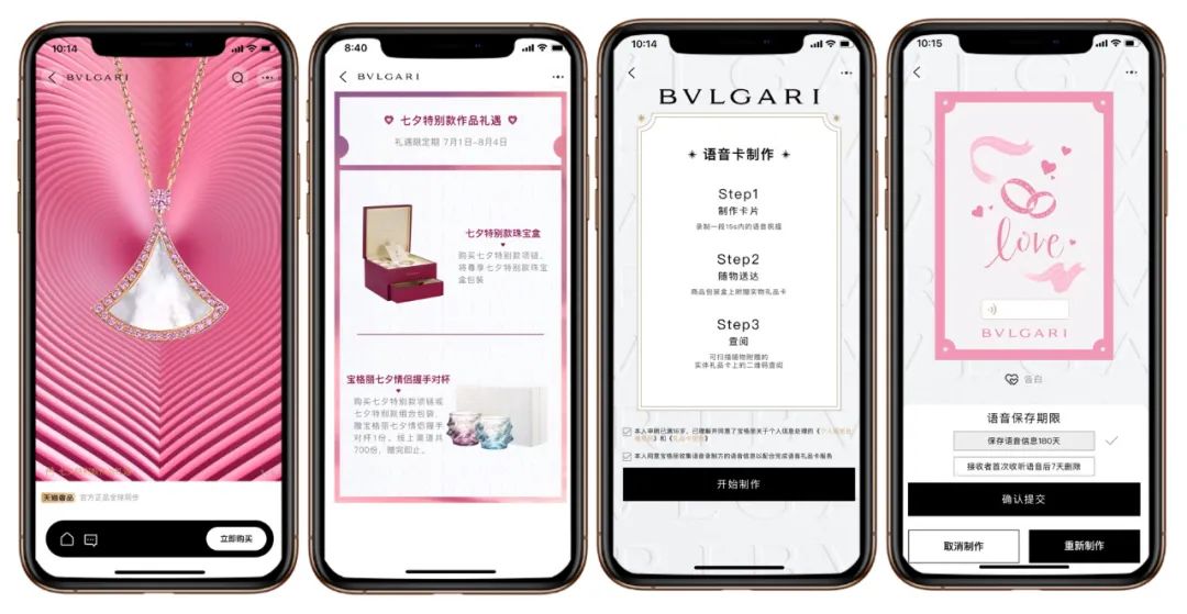 LVMH旗下宝格丽,今年七夕七成以上的订单使用了“送礼”定制服务