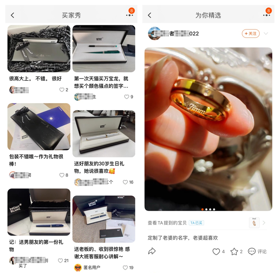 消费者在买家秀中晒出在天猫奢品购买的礼物