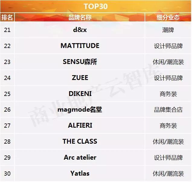 商务装上榜6家,品牌集合店上榜1家。