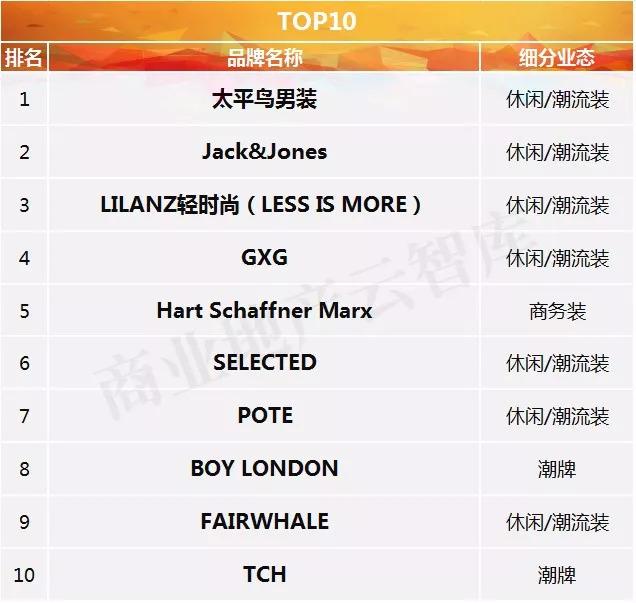 潮男经济大爆发,哪些男装品牌荣登TOP50?