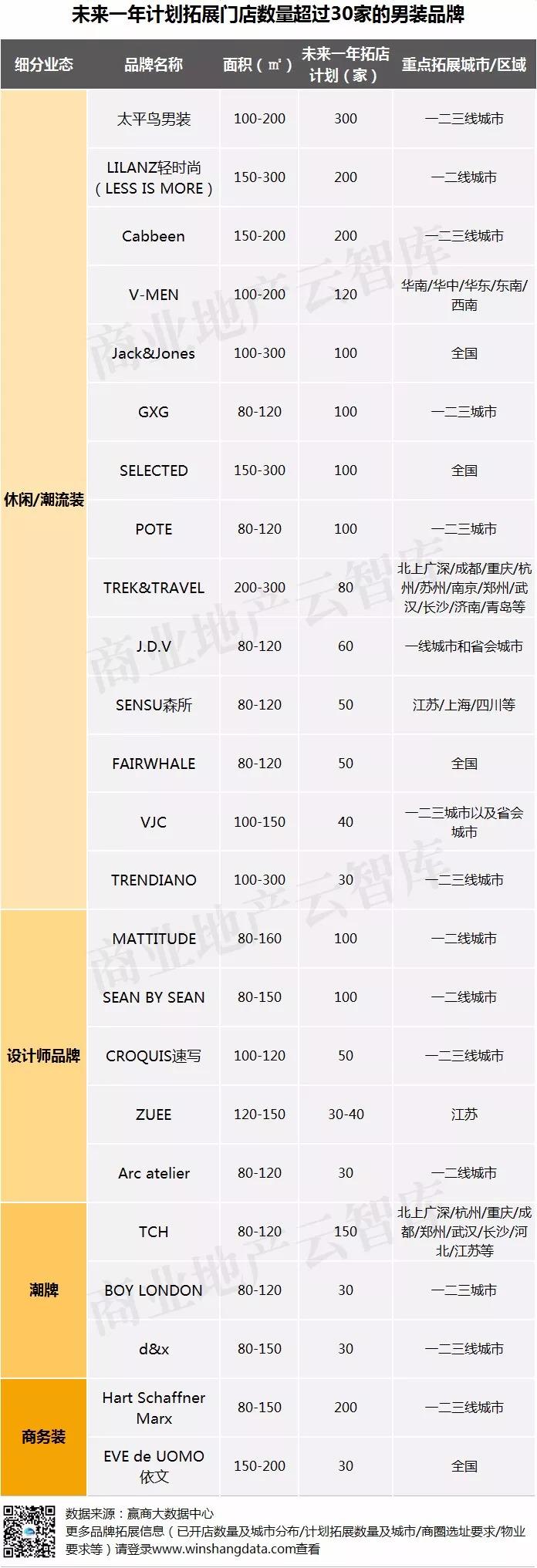 ✦ 未来强势拓店的男装品牌(未来一年计划拓展门店数量超过30家)。
