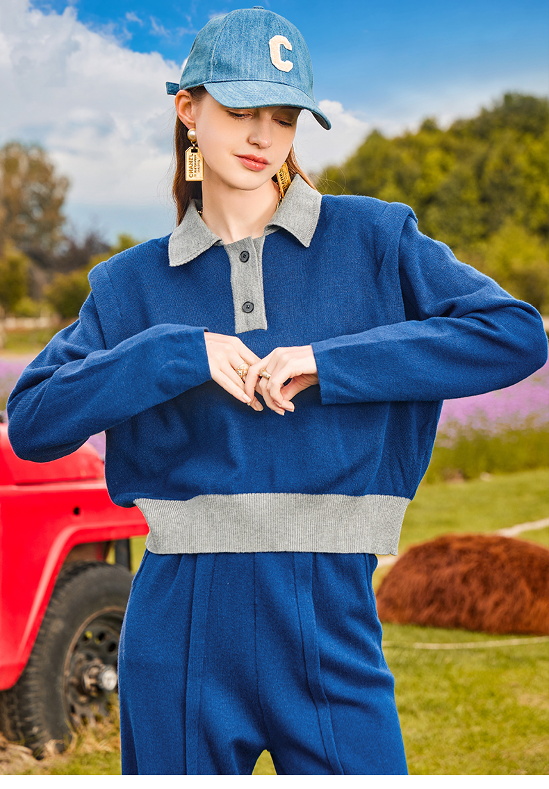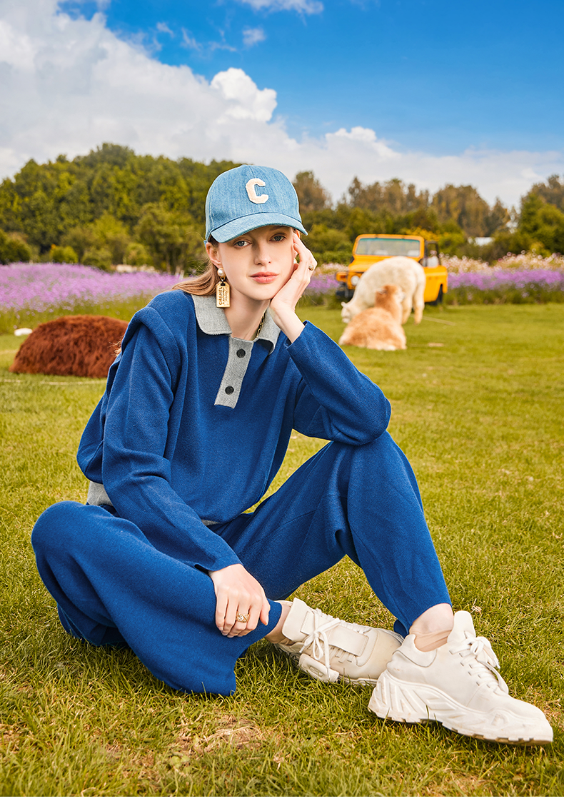 Polo的针织衫+高腰的阔腿裤组合,比一般的运动套装时髦太多了,建议大家试试看哦。