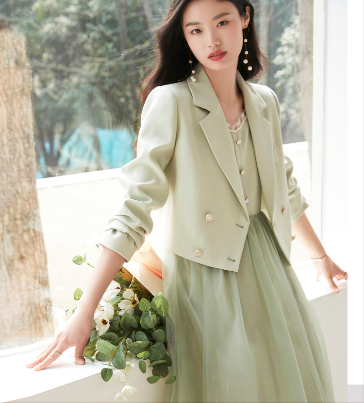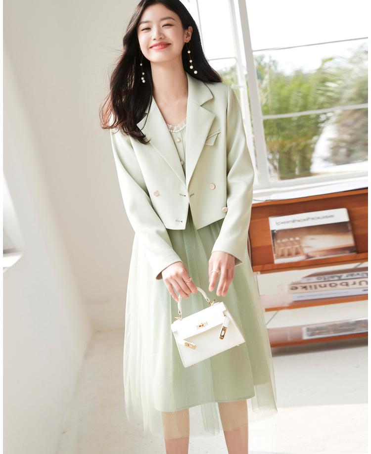 第七套:薄荷绿时尚西装连衣裙套装优雅的上班族两件套可以现在下面这组,薄荷绿小清新的配色,本身就比较舒服,春秋季节穿搭都好看。
