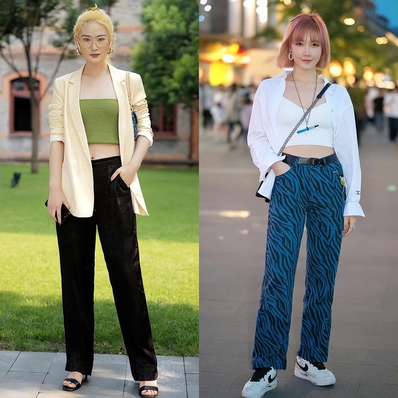 推荐大家在一年四季当中穿搭裤子的时候都要选择高腰裤,高腰款式的裤子可以让你的腰线看上去拉高,在整体的穿搭果上呈现出三七分的感觉,尤其是对于小个子来讲,高腰裤搭配上短上衣简直是显高搭配当中的yyds。