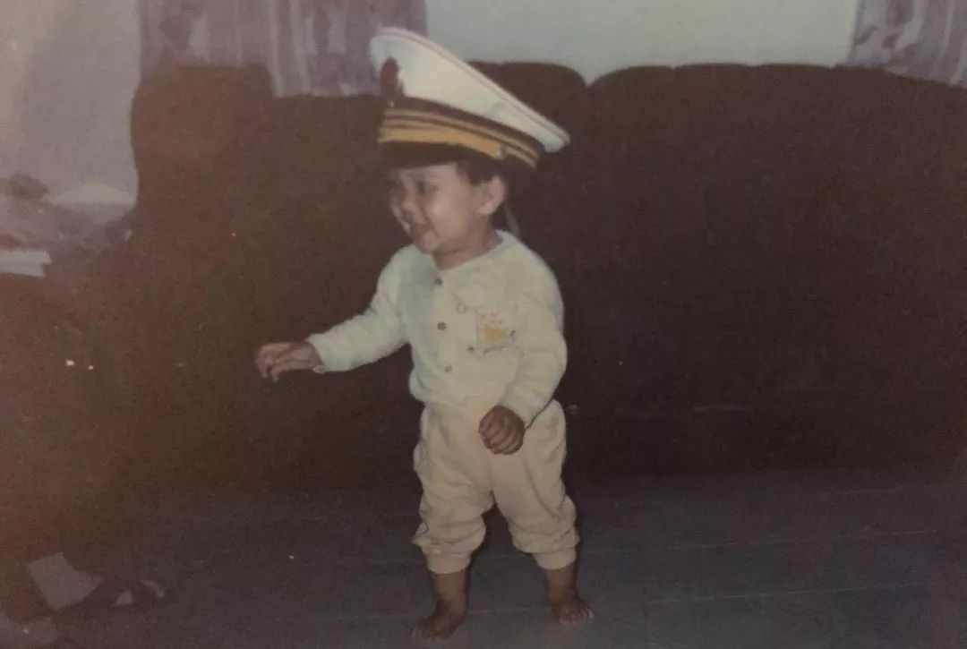 据妈妈告诉我,我刚学会走路的时候,喜欢的东西竟然是妈妈的警帽。每次妈妈回家,把帽子放下,我就很喜欢冲过去拿起来戴。这张照片记录了那天真烂漫的一刻。