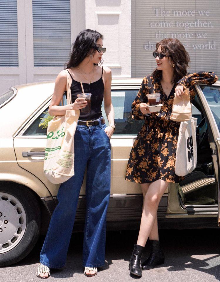 顾名思义,喇叭牛仔裤呈现出来的是“上紧下松”的版型,尤其是小腿至脚踝位置的裤腿剪裁比较宽松,因此也不太适合小个子。