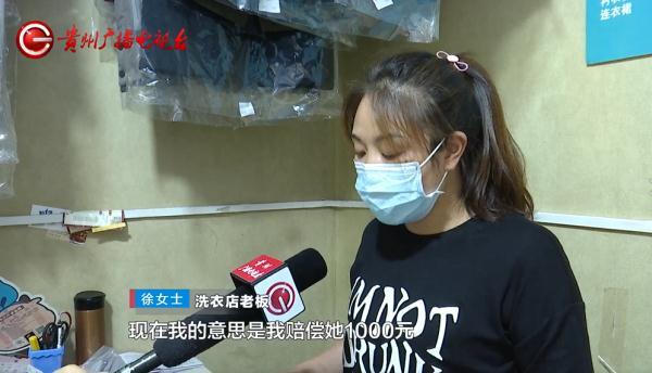 洗衣店老板 徐女士:她已经来了七次。我同意赔偿,如果是赔偿一千元,那衣服她就拿走,但如果要赔偿两千元,衣服就不能拿走。