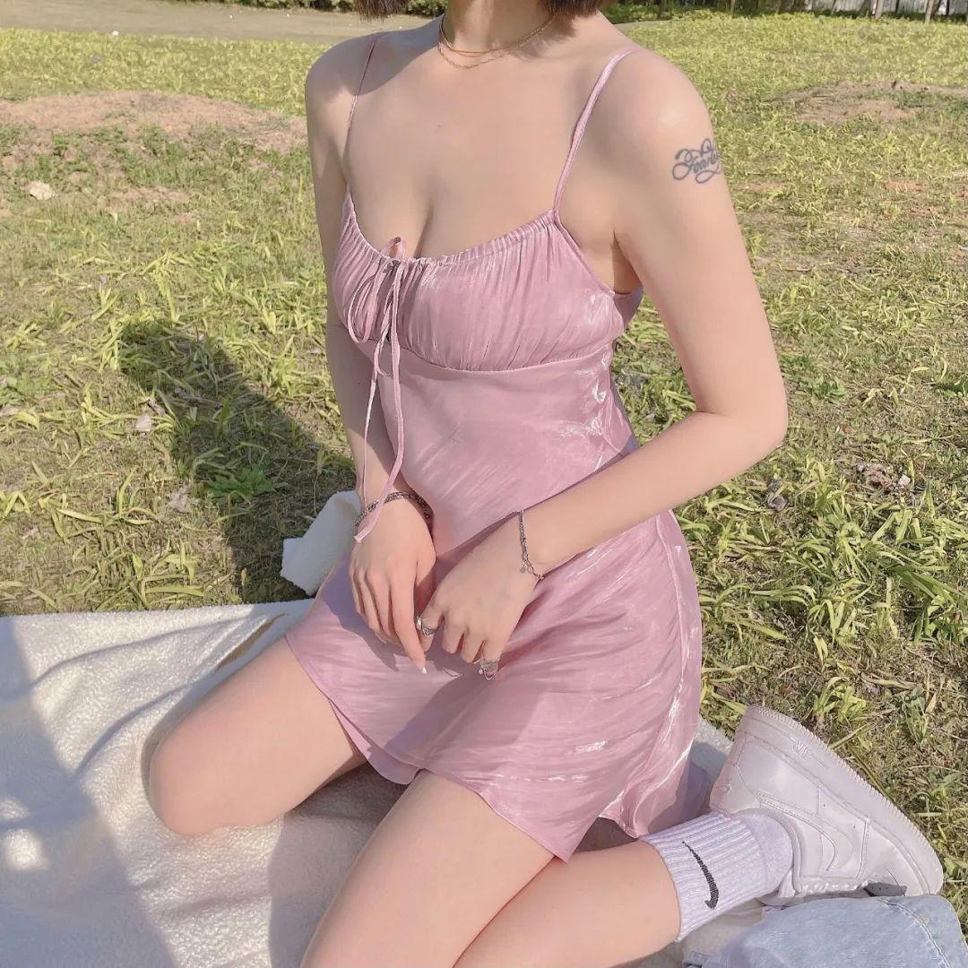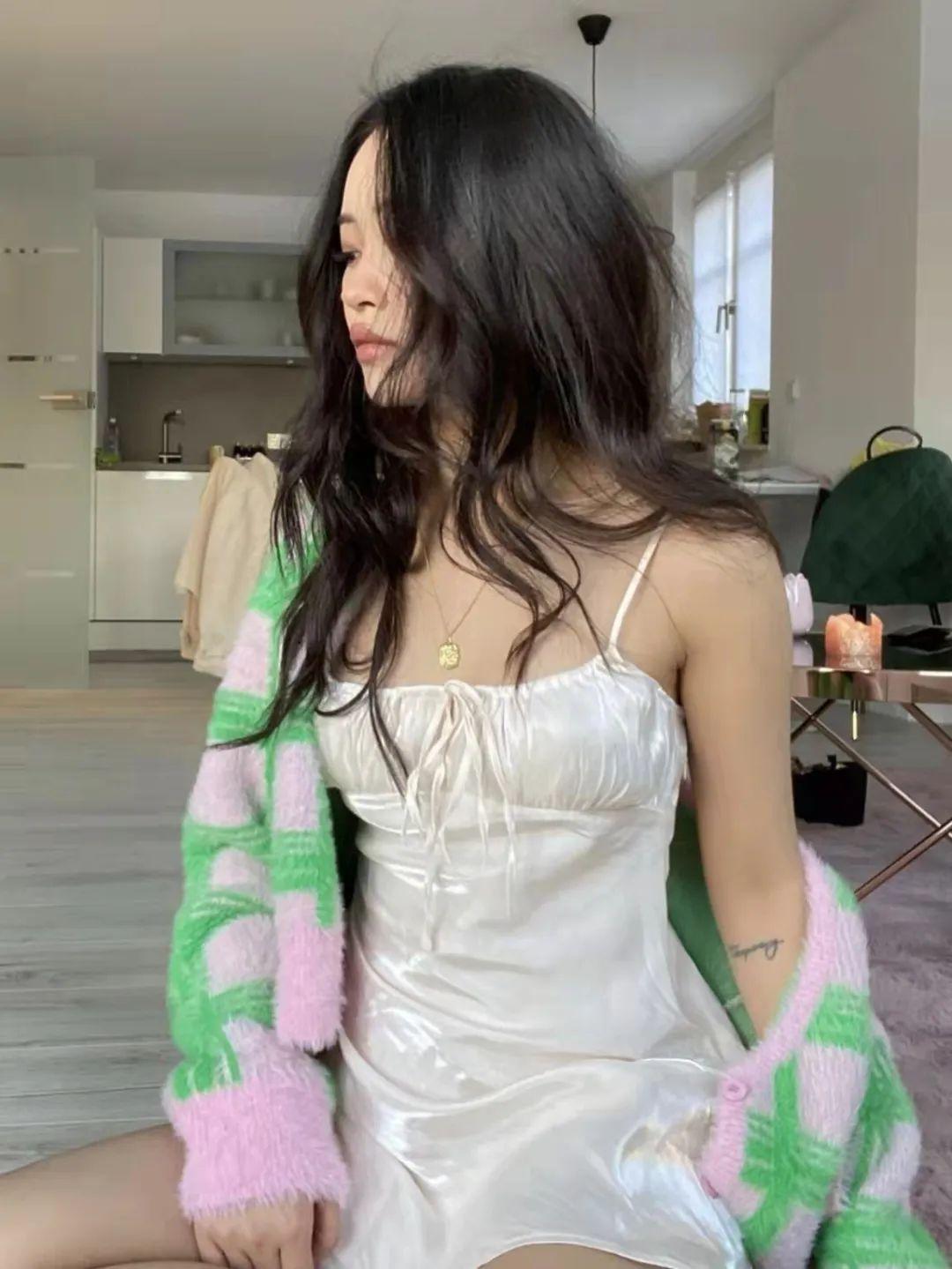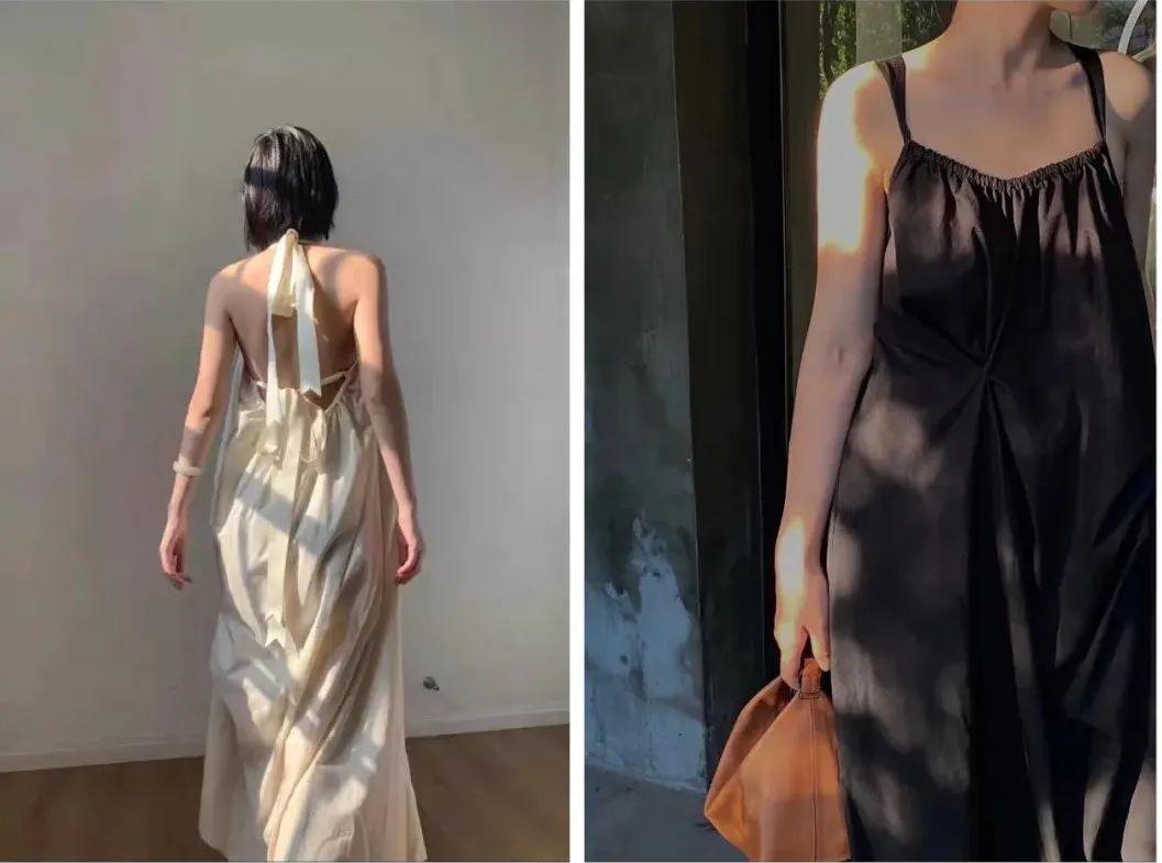 ⑬ 春夏的阳光温暖不灼人,很适合穿这种带有光泽感的吊带裙。