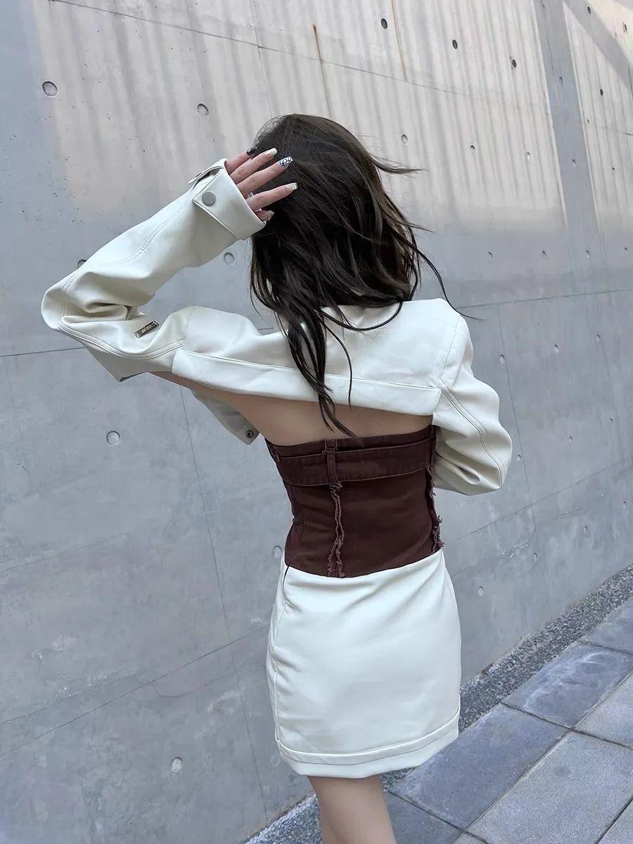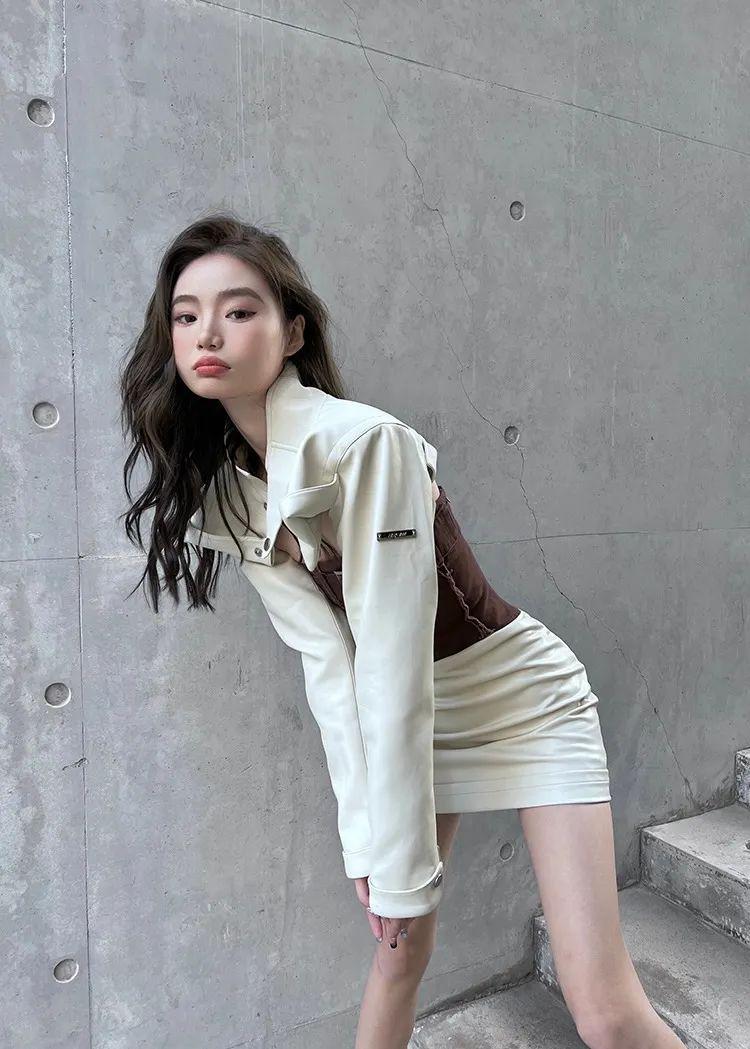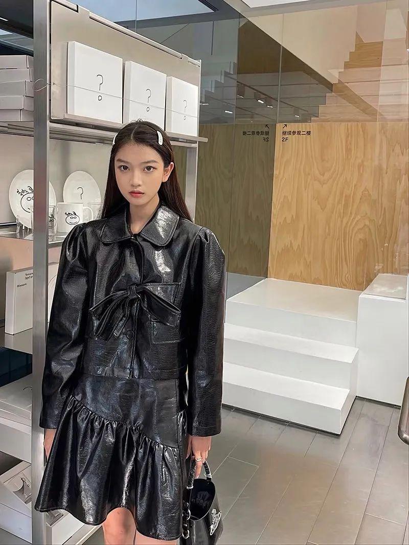 ㉕ 甜酷女孩快来看这套蝴蝶结皮裙套装!正好趁着北方还在倒春寒,很多地方还能穿好一阵子。